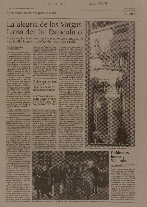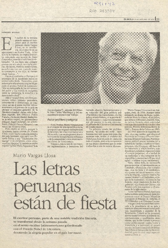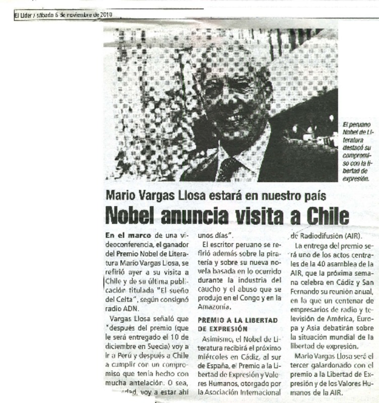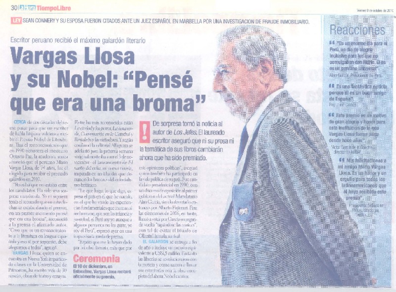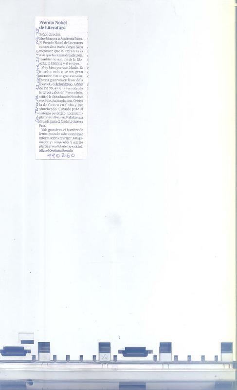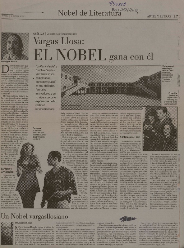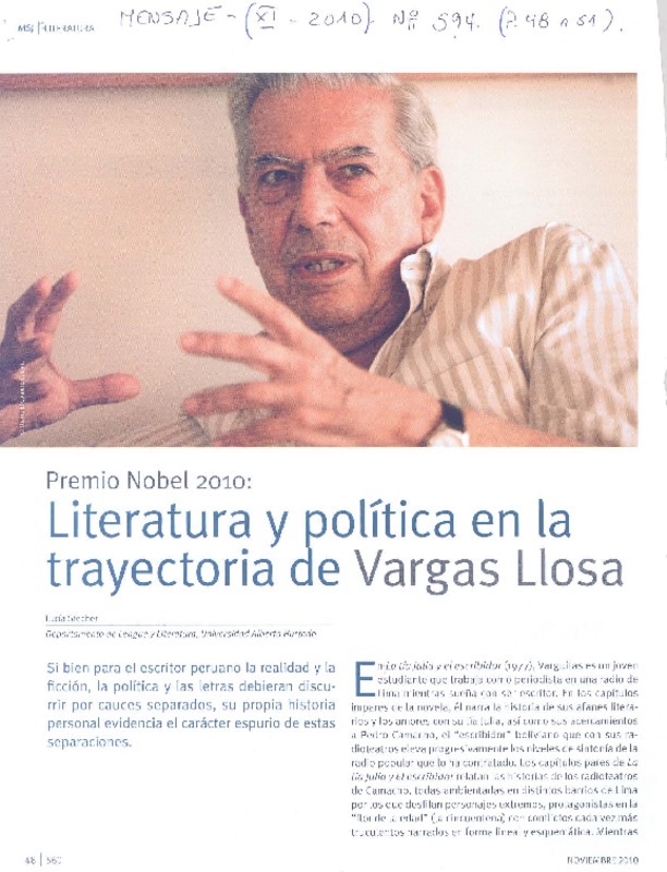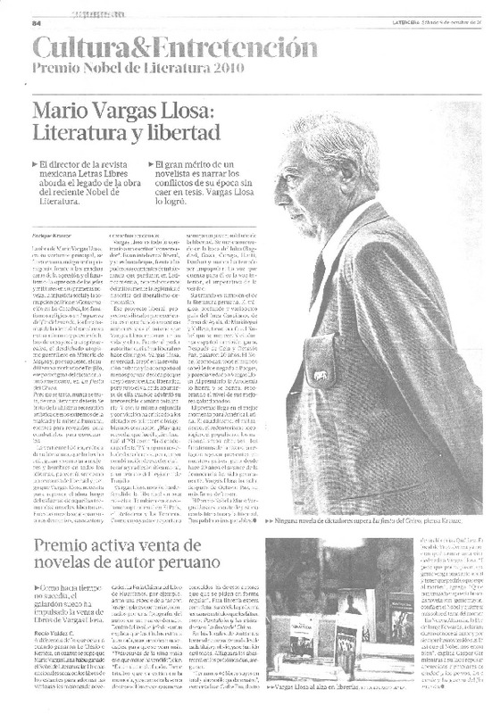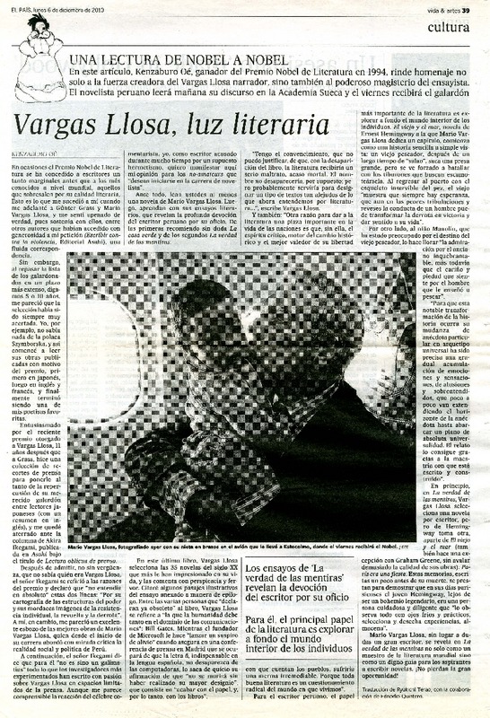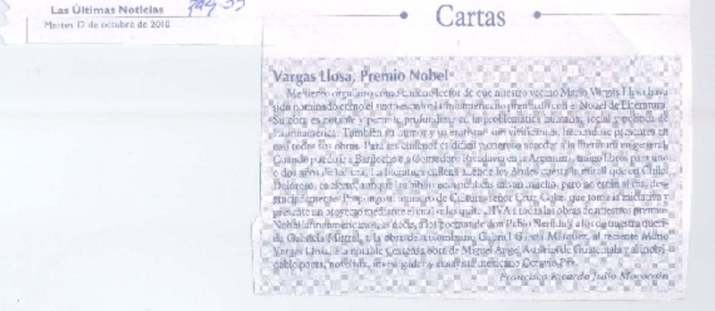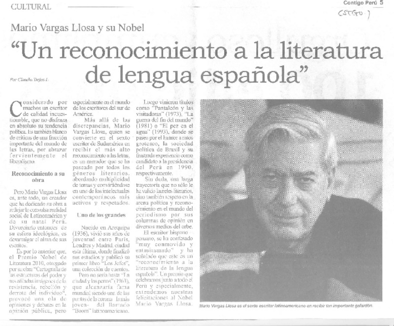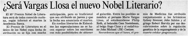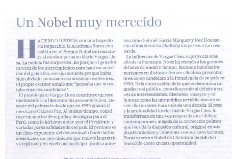 Vargas Llosa, Premio Nobel [artículo] Francisco Ricardo Julio Mococain.