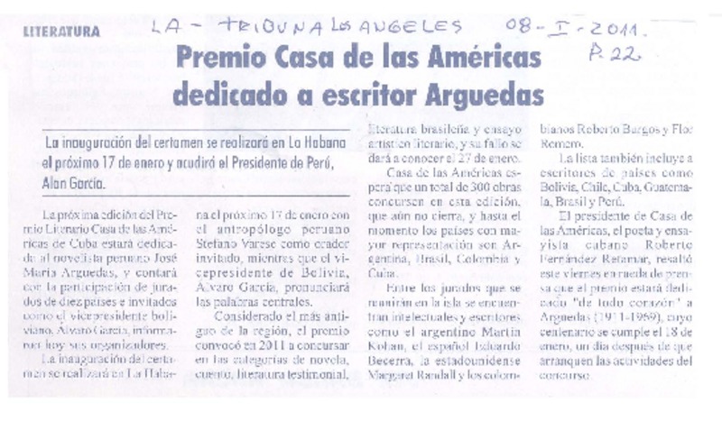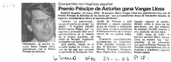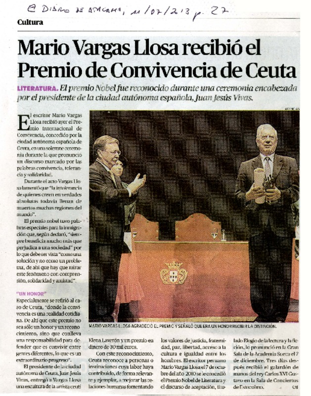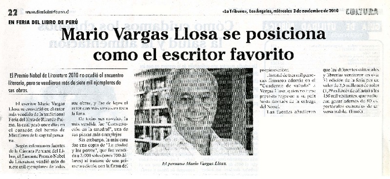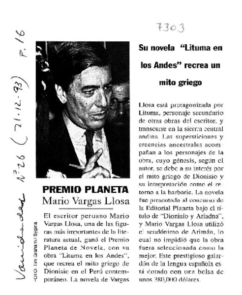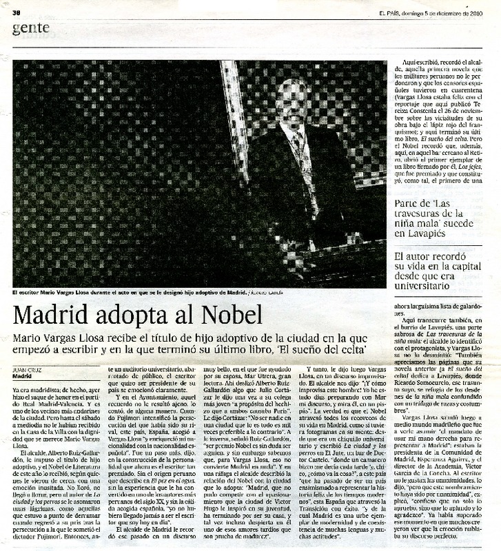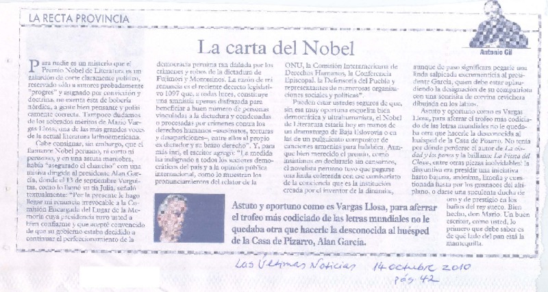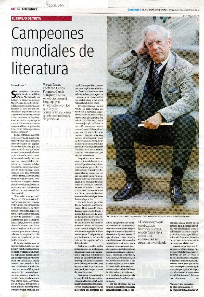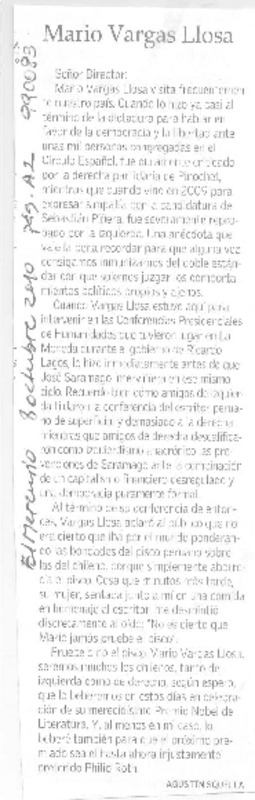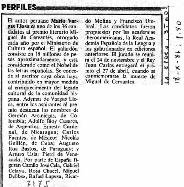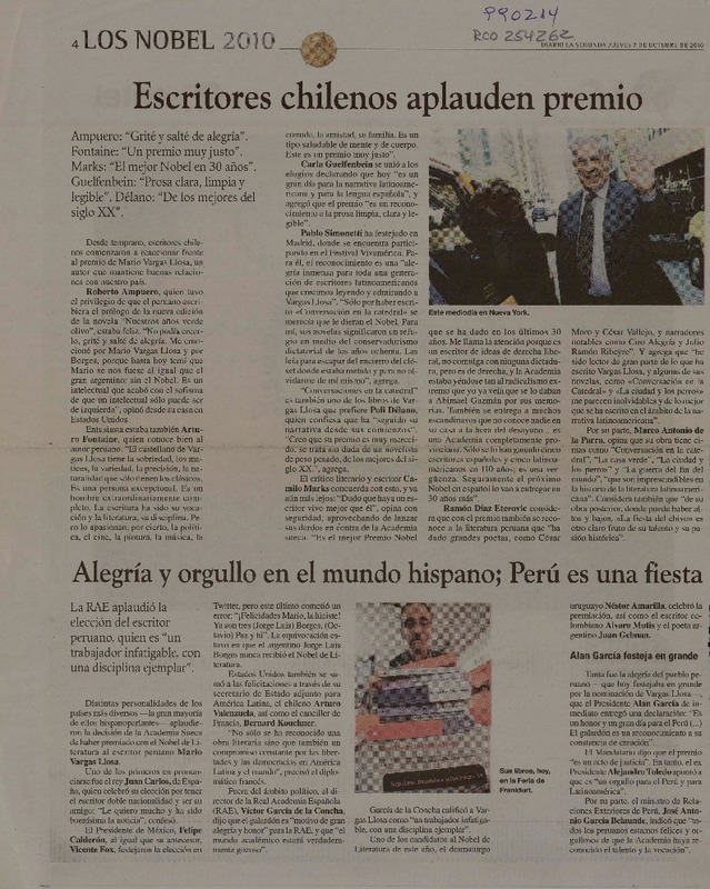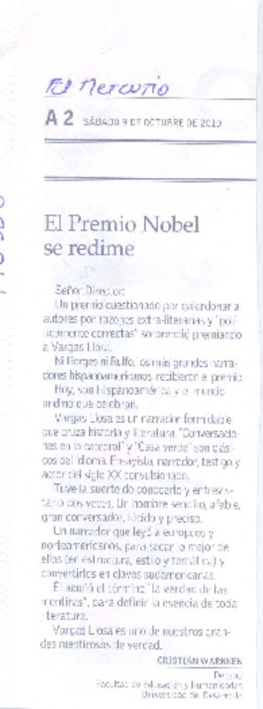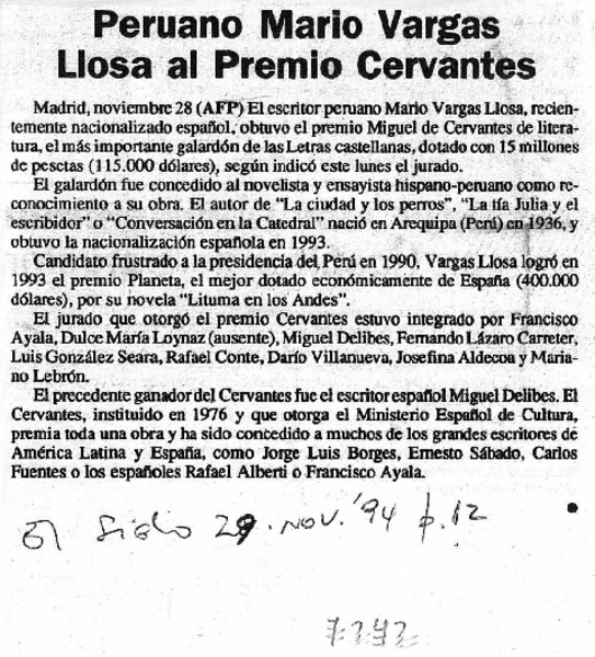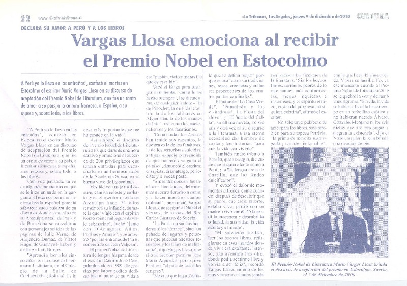 Vargas Llosa, Premio Nobel [artículo] Francisco Ricardo Julio Mococain.