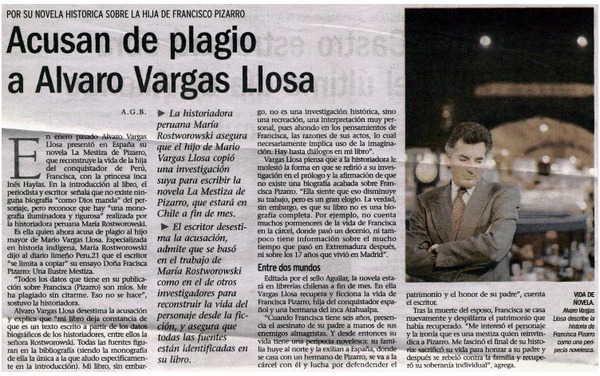 Acusan de plagio a Alvaro Vargas Llosa [artículo] A. G. B.