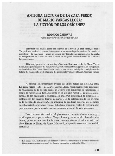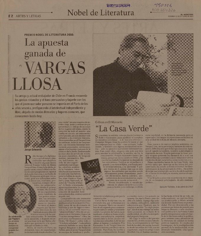 Vargas Llosa, "La casa verde" [artículo] Ignacio Valente.