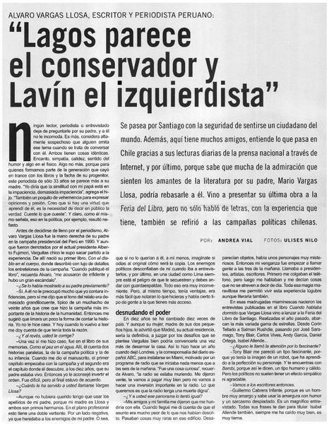 Alvaro Vargas Llosa y la fauna política (entrevistas) [artículo] A.P.
