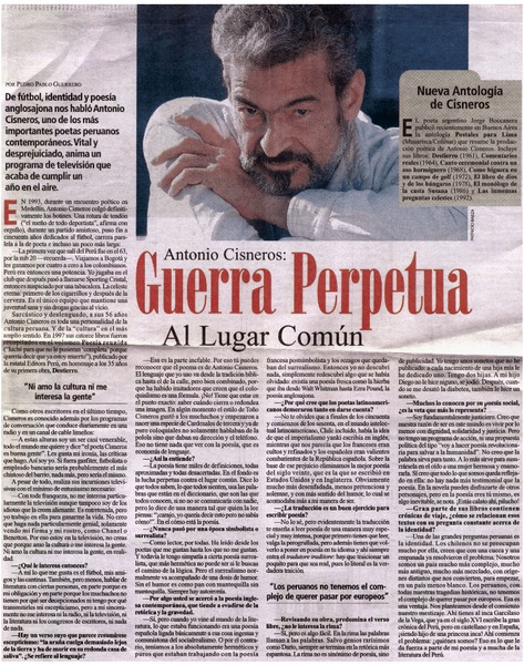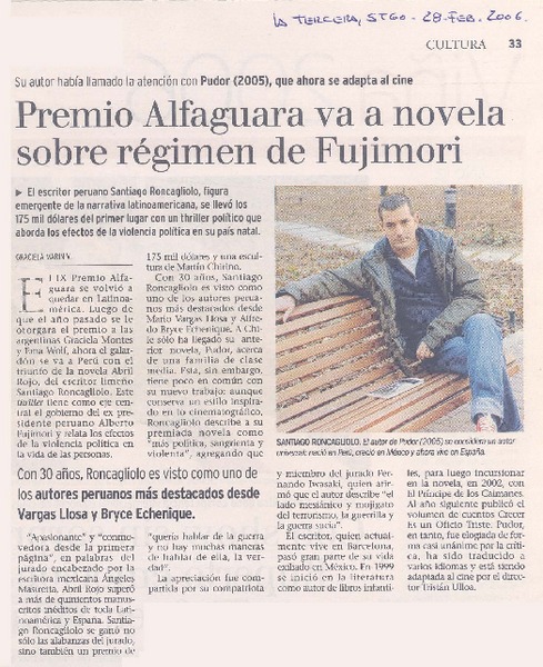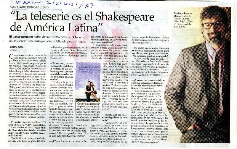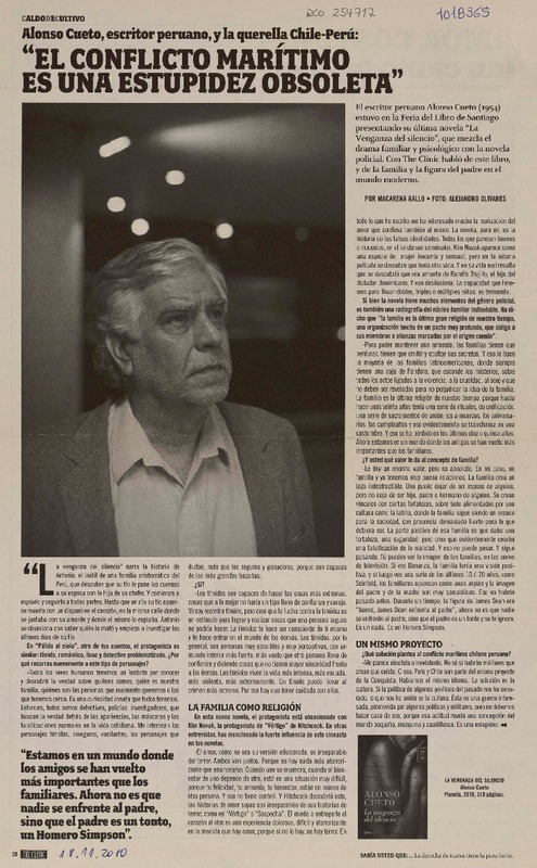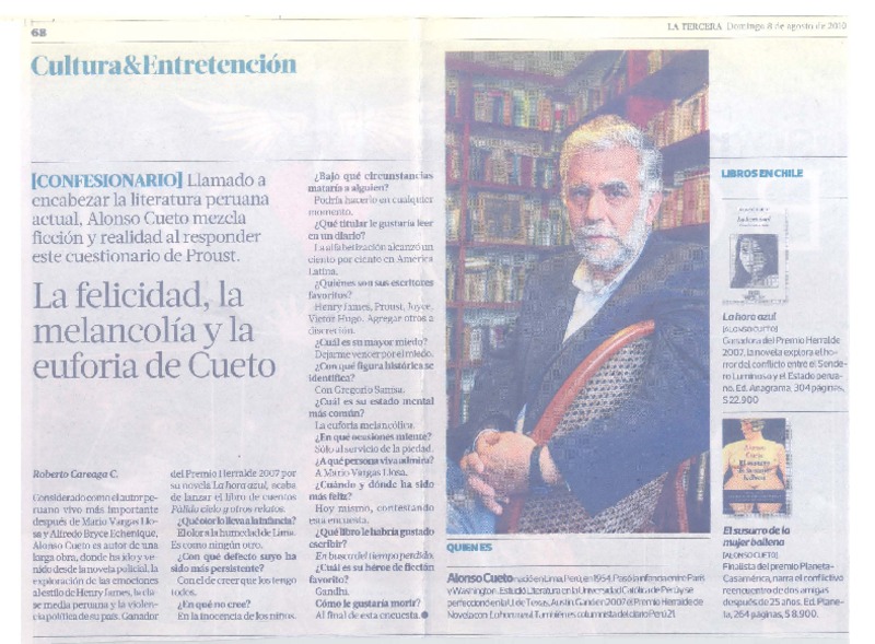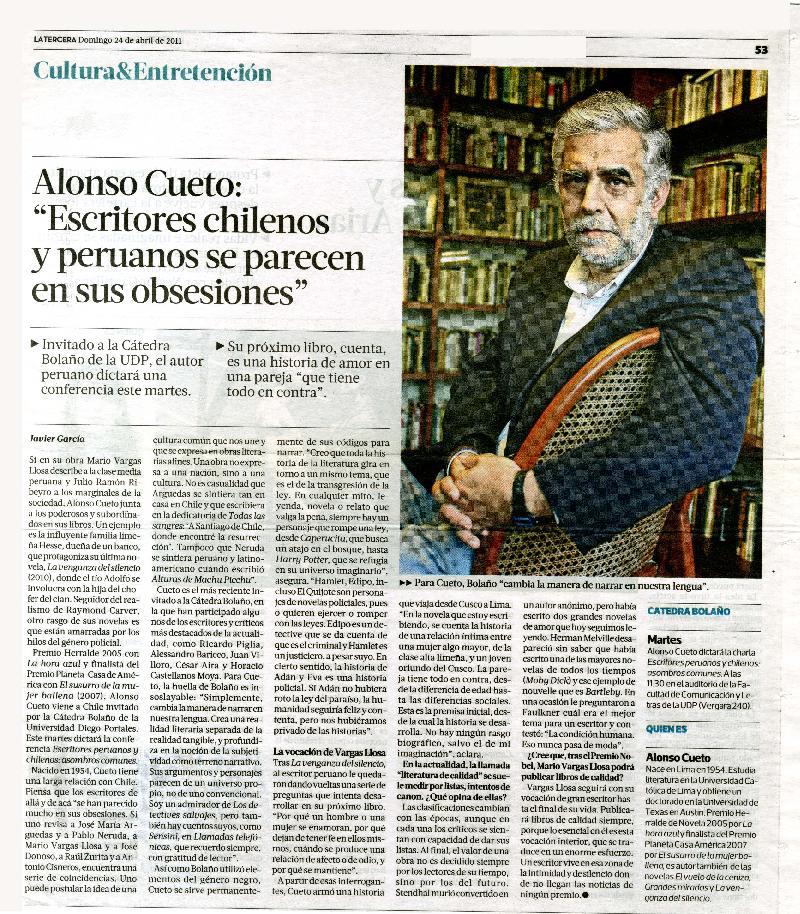 Alonso Cueto: "los conflictos de Perú son un paraíso para un escritor" [artículo] Roberto Careaga C.