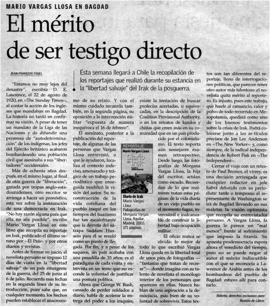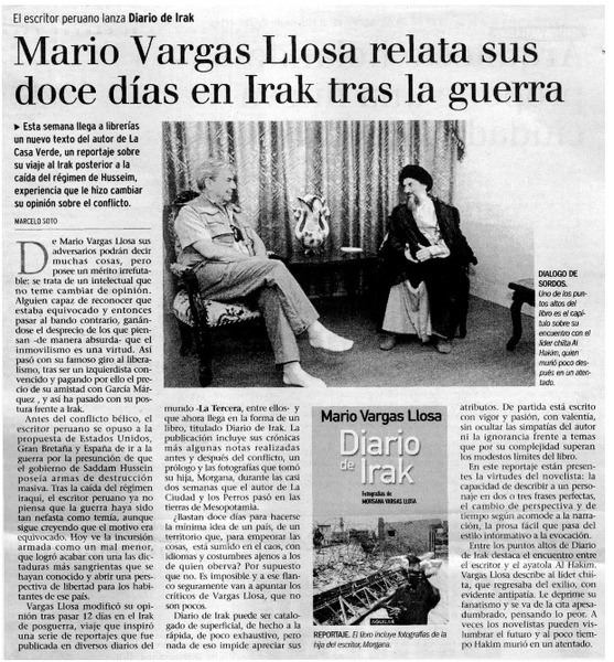 Vargas Llosa visita Bagdad y recoge testimonios. [artículo]