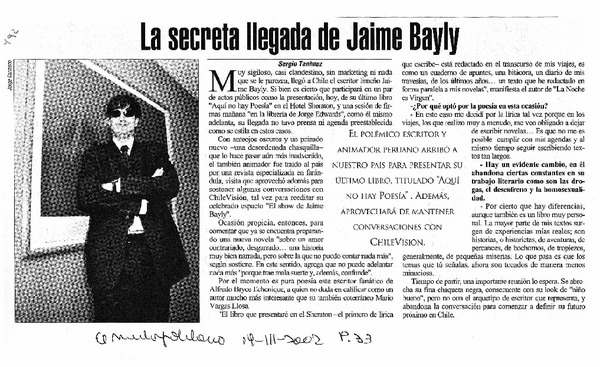 Autores chilenos - Lemebel, Pedro - Autores argentinos - Bayly, Jaime - Autores peruanos - Teitelboim, Volodia - Moreno, Alejandro - Autores ecuatorianos - Zurita, Raúl - Birmajer, Marcelo