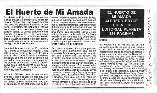 Autores peruanos - Bryce Echenique, Alfredo - Huerto de mi amada