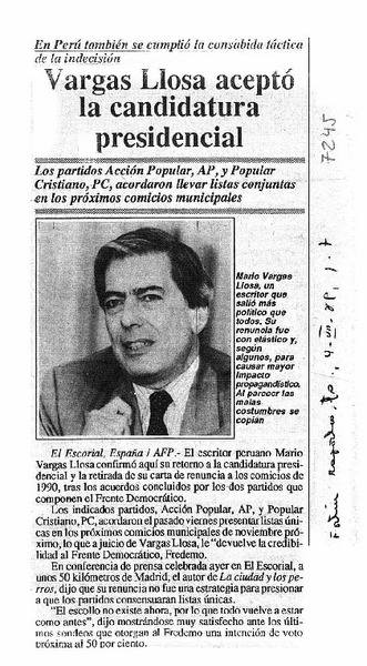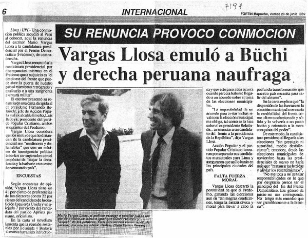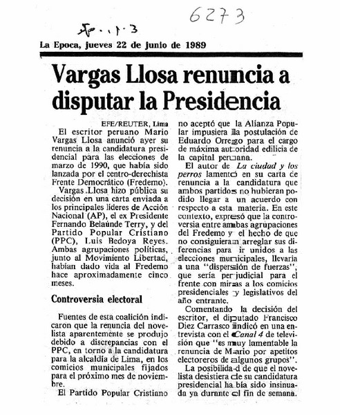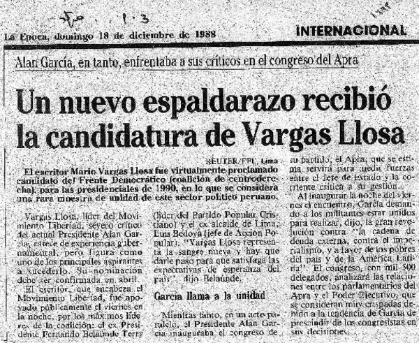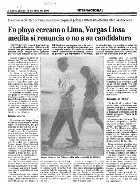 Vargas Llosa renuncia a disputar la Presidencia. [artículo]