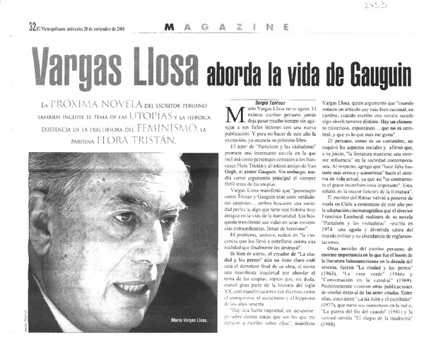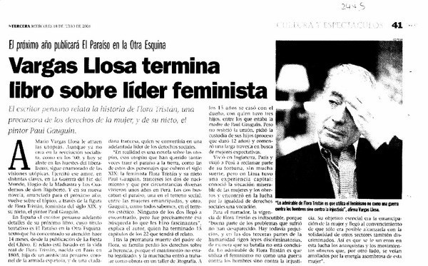 Vargas Llosa termina libro sobre líder feminista. [artículo]