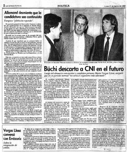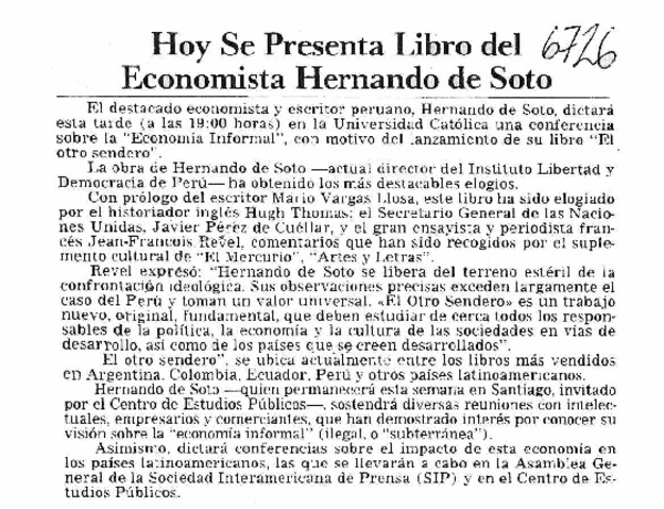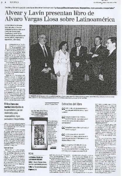 Alvear y Lavín presentan libro de Alvaro Vargas Llosa sobre Latinoamérica. [artículo]