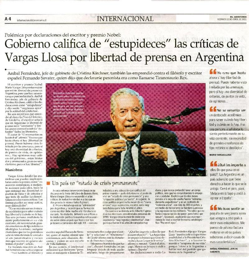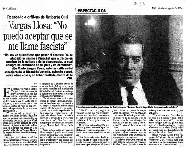 Vargas Llosa: "no puedo aceptar que se me llame facista". [artículo]