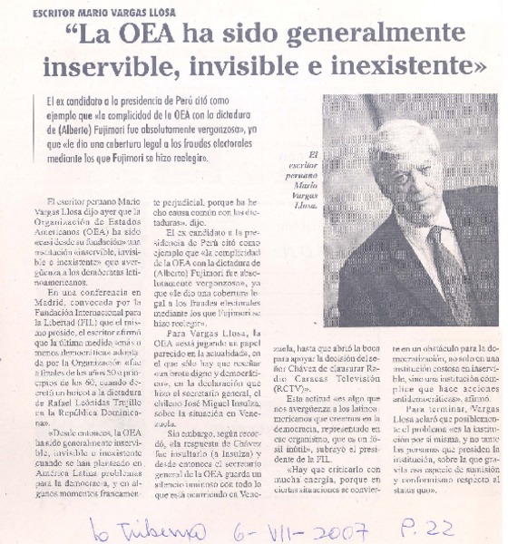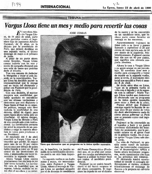 Vargas Llosa tiene un mes y medio para revertir las cosas [artículo] José Comas.