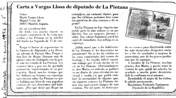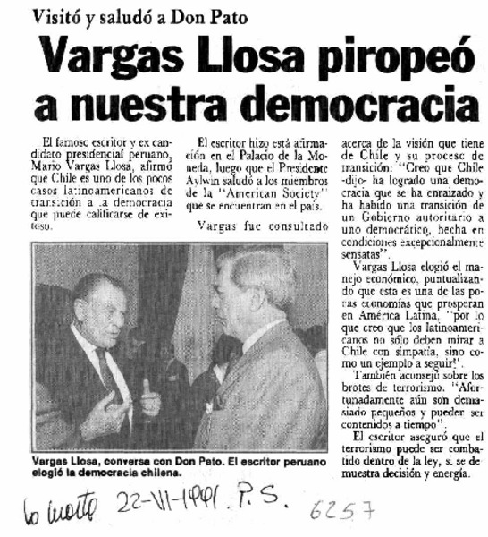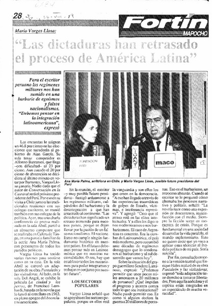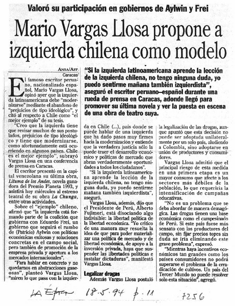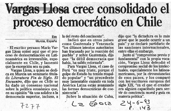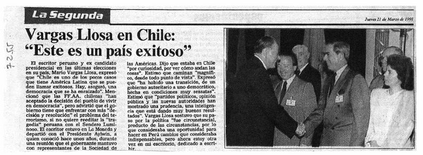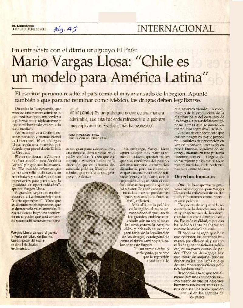 Vargas Llosa valora "éxito" de dictadura de Pinochet. [artículo]