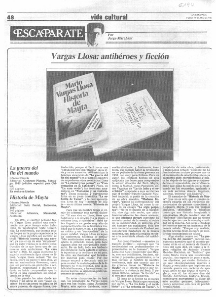 Vargas Llosa, "Historia de Mayta" [artículo] Bernardo Soria.