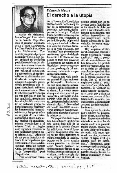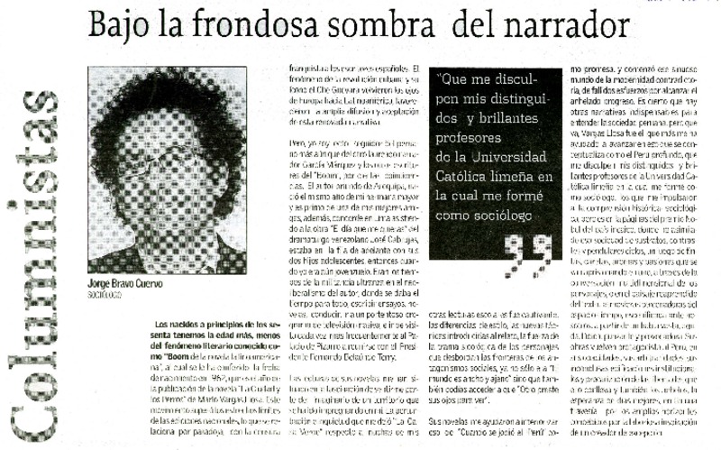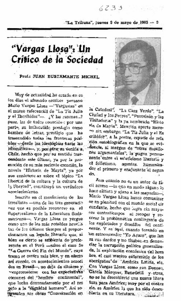 Vargas Llosa", un crítico de la sociedad [artículo] Juan Bustamante Michel.