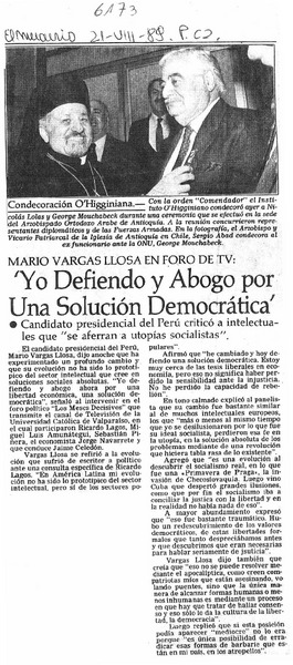 Yo defiendo y abogo por una solución democrática. [artículo]