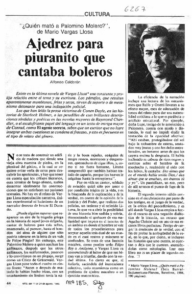 Ajedrez para piuranito que cantaba boleros [artículo] Alfonso Calderón.