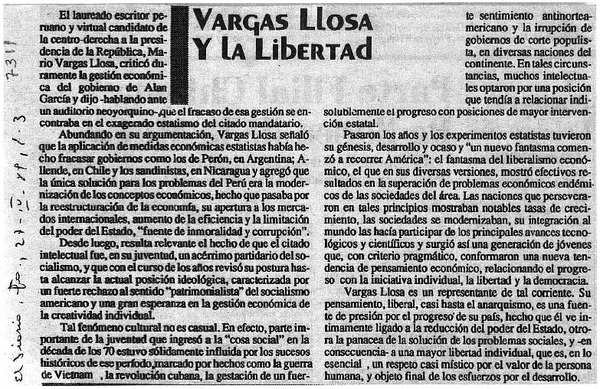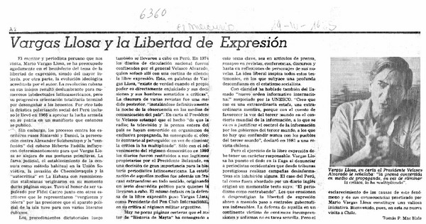 Vargas Llosa y la libertad de expresión [artículo] Tomás P. Mac Hale.