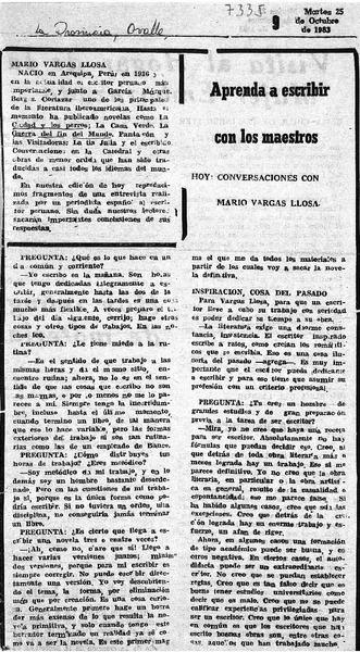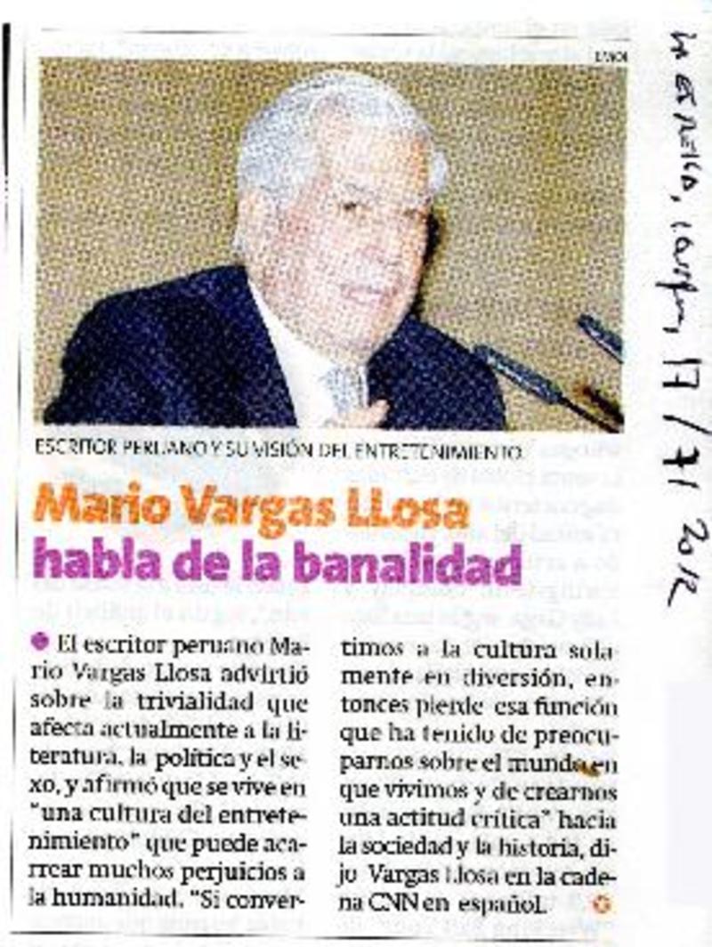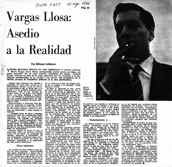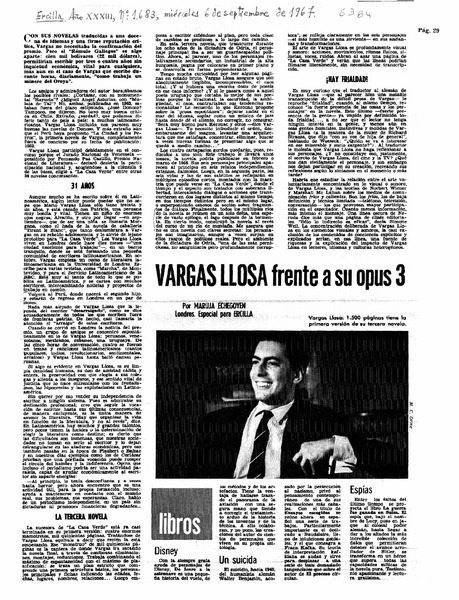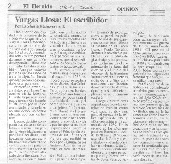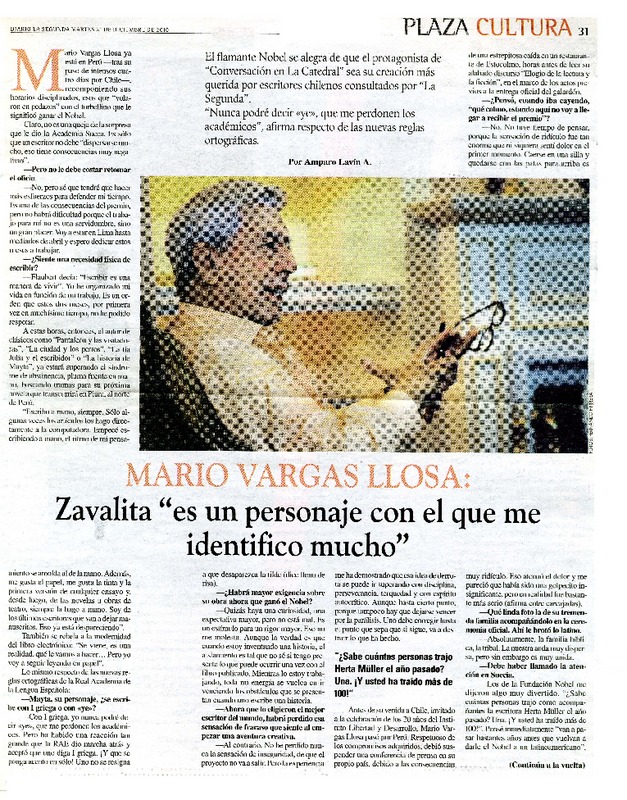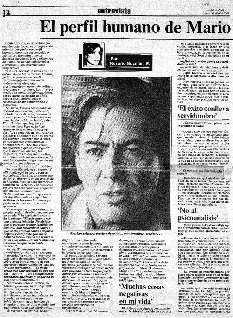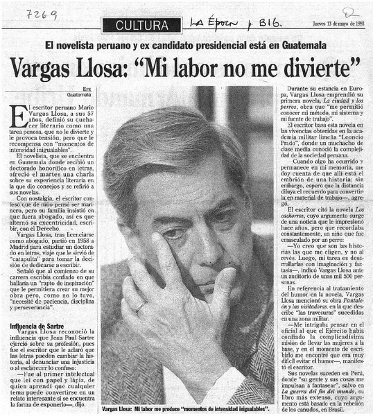 Vargas Llosa: "Mi labor no me divierte". [artículo]