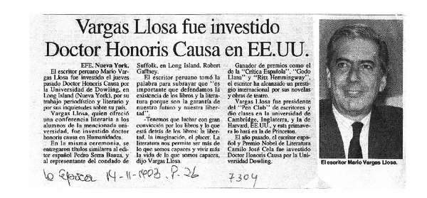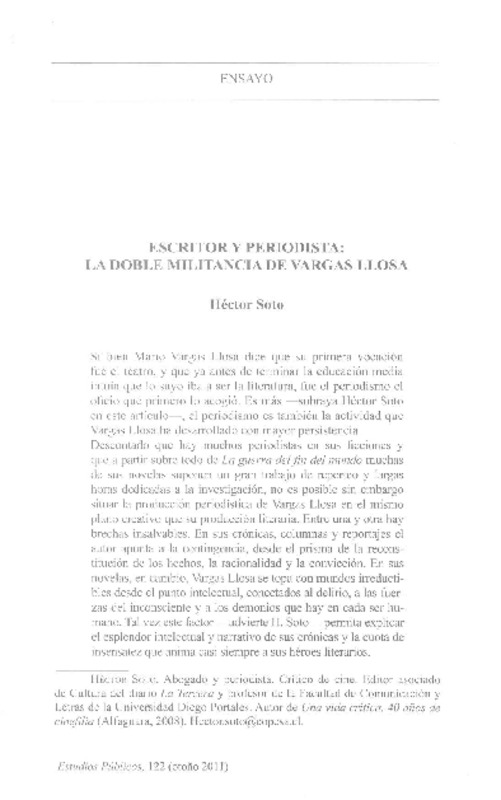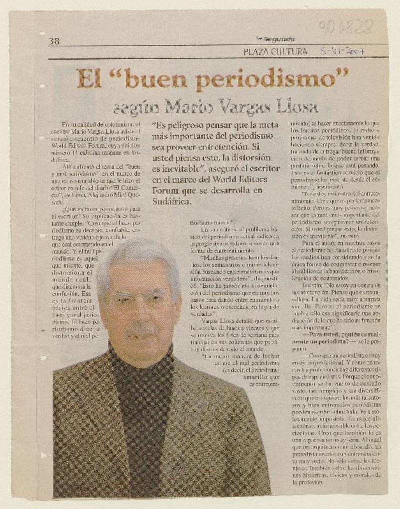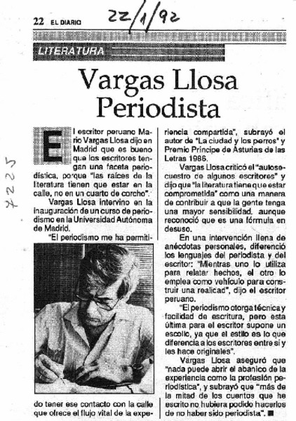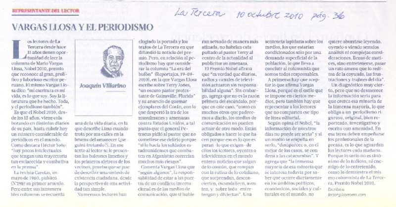 Vargas Llosa y el periodismo [artículo] Joaquín Villarino.