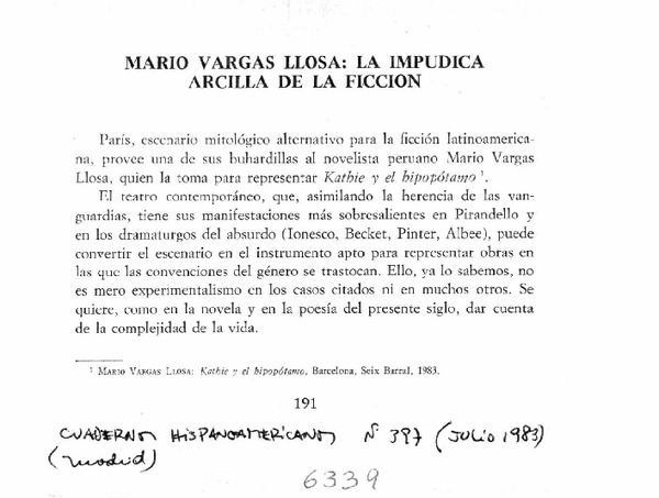 Vargas Llosa: realidad y ficción en América Latina. [artículo]