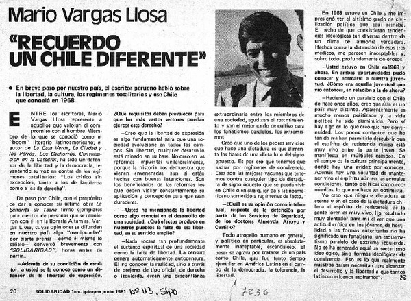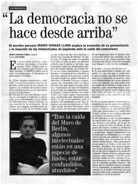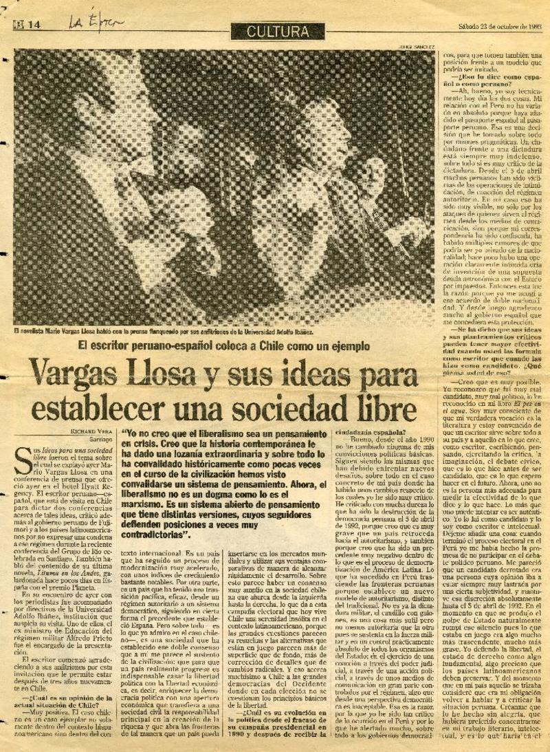Vargas Llosa y sus ideas para establecer una sociedad libre [entrevista] [artículo] : Richard Vega.