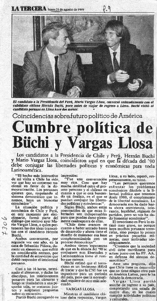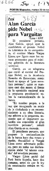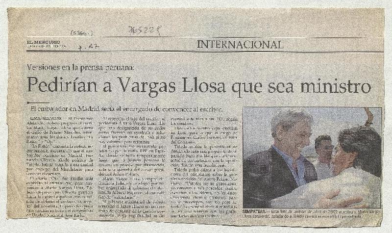 Versiones en la Prensa Peruana pedirián a Vargas Llosa que sea Ministro [artículo] :