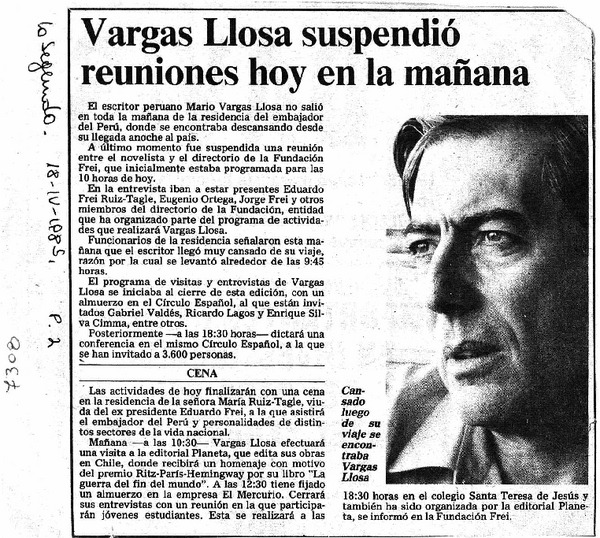 Vargas Llosa suspendió reuniones hoy en la mañana. [artículo]