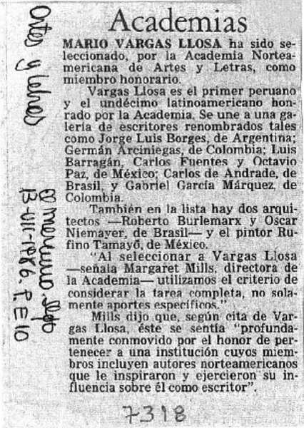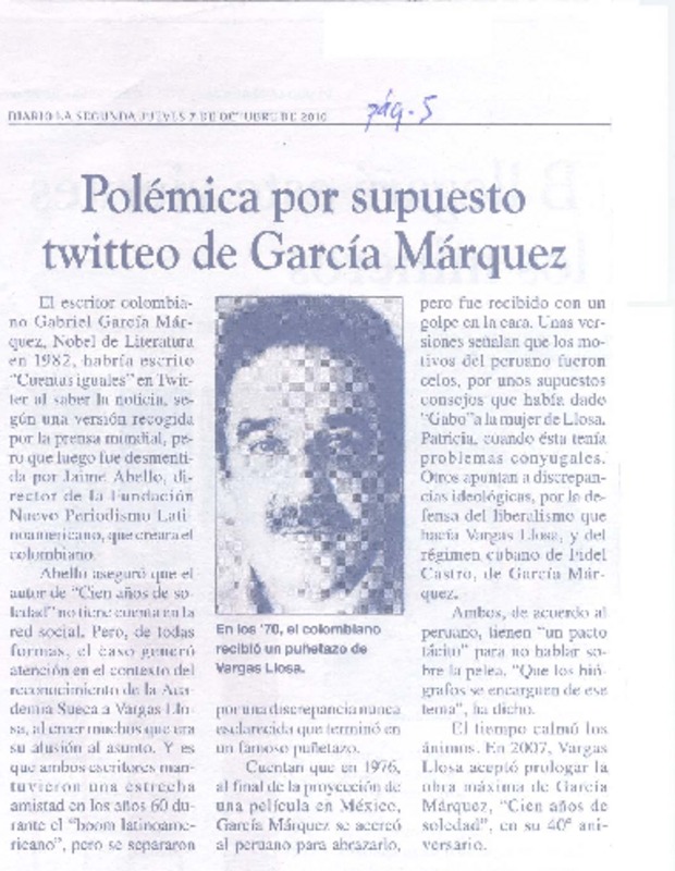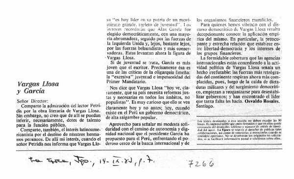 Vargas Llosa y García [artículo] Osvaldo Rosales.