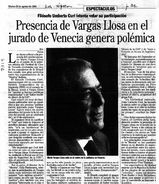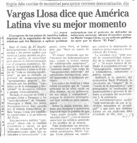 Vargas Llosa y sus vientos de cambio [artículo] Javier García.