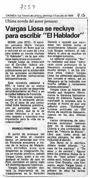 Vargas Llosa se recluye para escribir "El Hablador". [artículo]