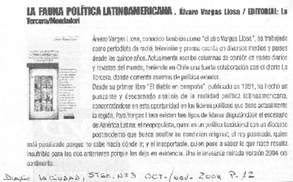 Vargas Llosa, Alvaro - Autores peruanos - Entrevista - La Fauna política latinoamericana