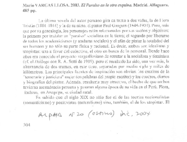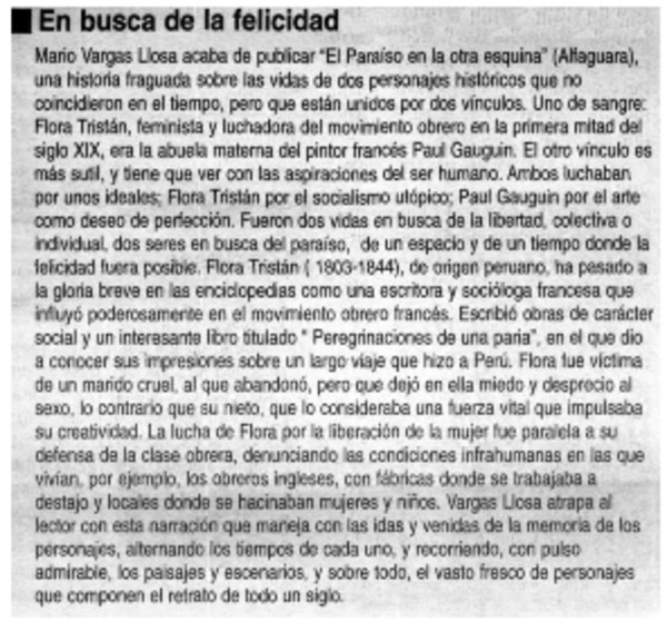 Autores peruanos - Vargas Llosa, Mario - El paraíso en la otra esquina