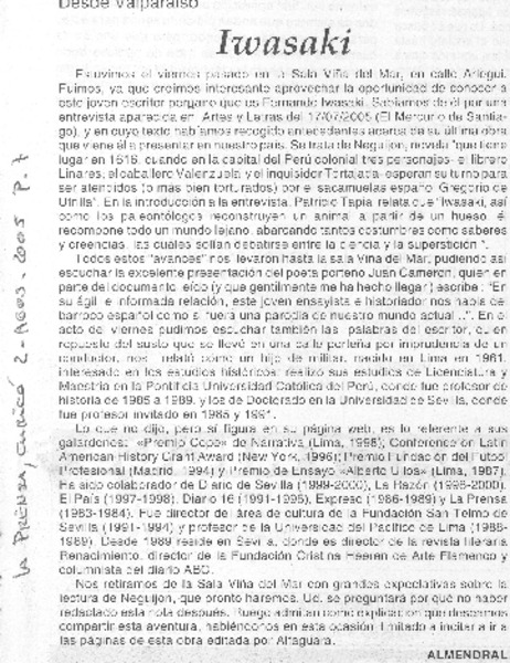 Autores peruanos - Ajuar funerario - Iwasaki Cauti, Fernando