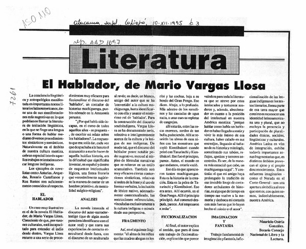 Autores peruanos - Vargas Llosa, Mario - Hablador