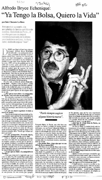 Alfredo Bryce Echenique, "Ya tengo la bolsa, quiero la vida" [artículo] Inés Chocano La Rosa.