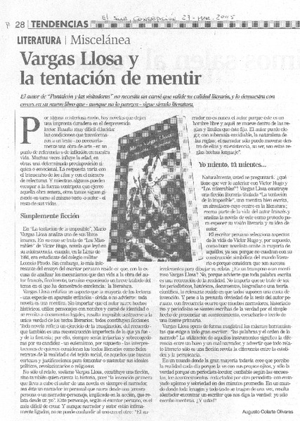 Vargas Llosa y la tentación de mentir [artículo] Augusto Colarte Olivares