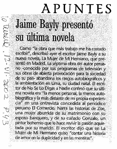 Entrevistas - Autores peruanos - Bryce Echenique, Alfredo - Esposa del Rey de las Curvas