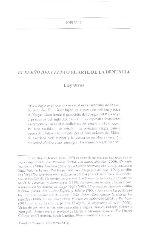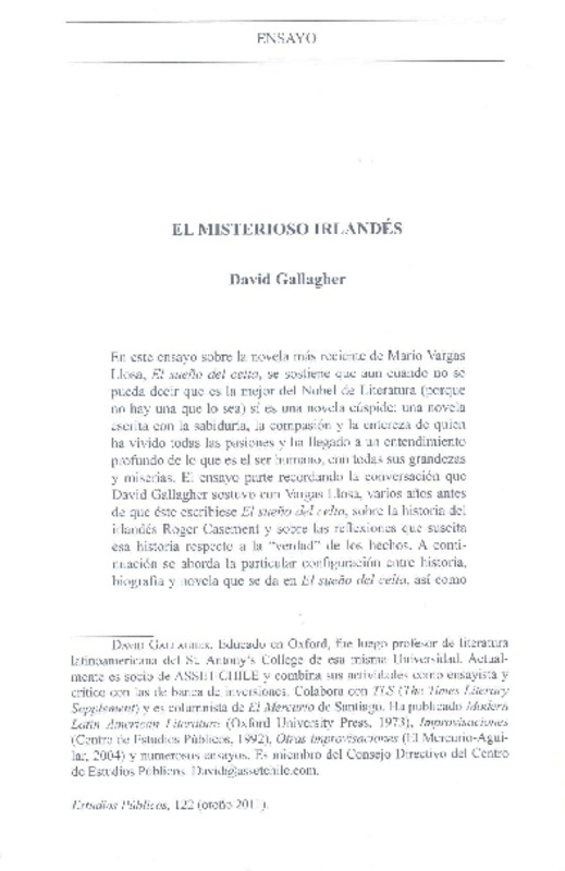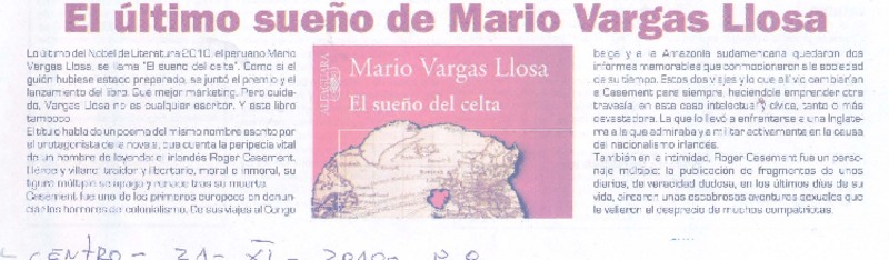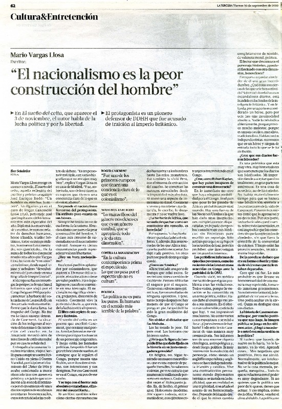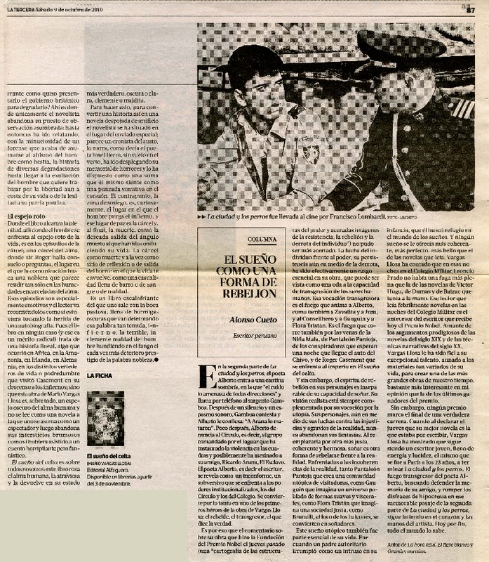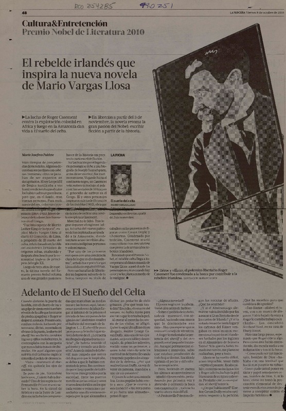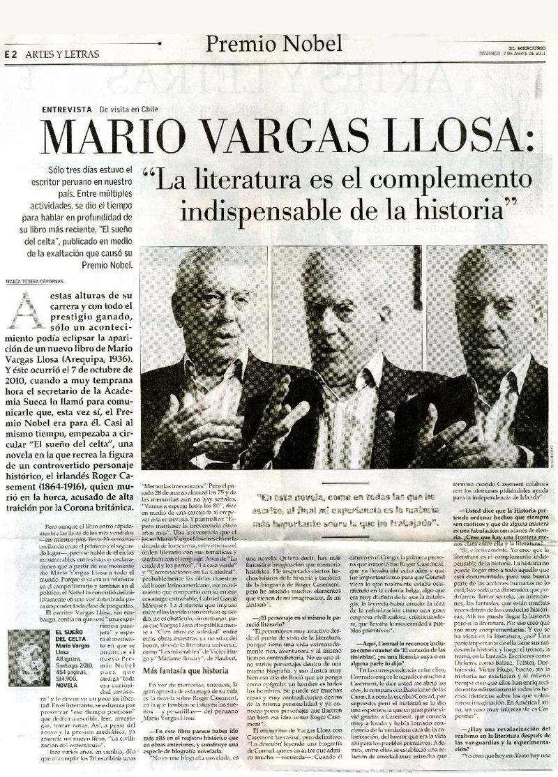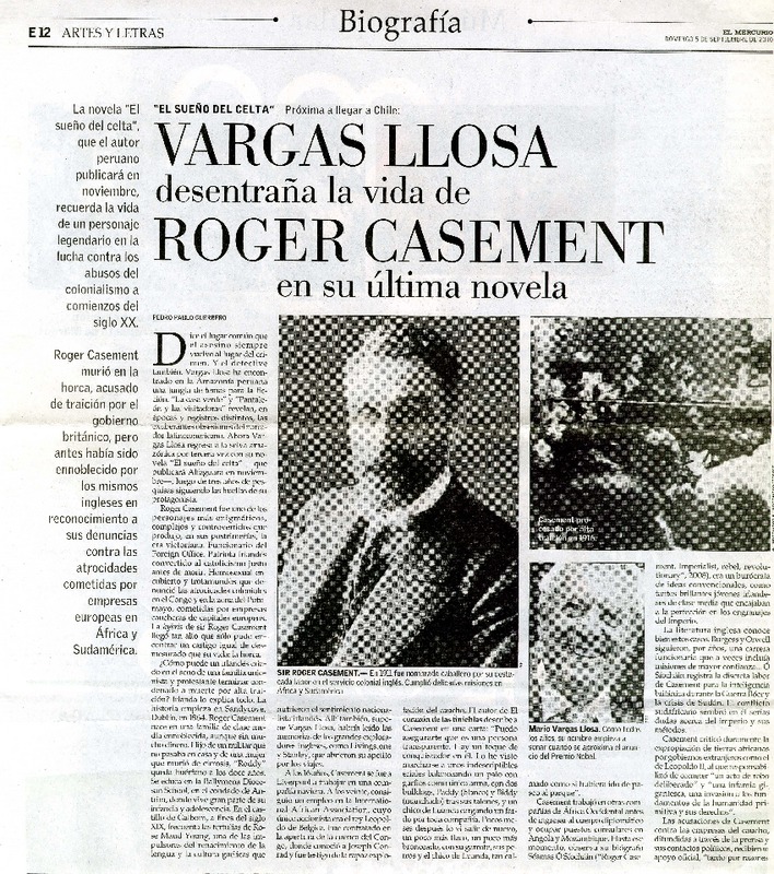 Vargas Llosa prepara novela sobre justiciero y rebelde irlandés [artículo]Andrés Gómez