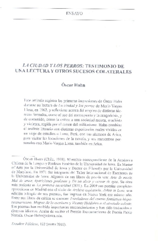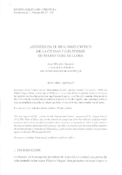 Aisthesis en el realismo crítico de La ciudad y los perros de Mario Vargas Llosa [artículo] José Morales Saravia.