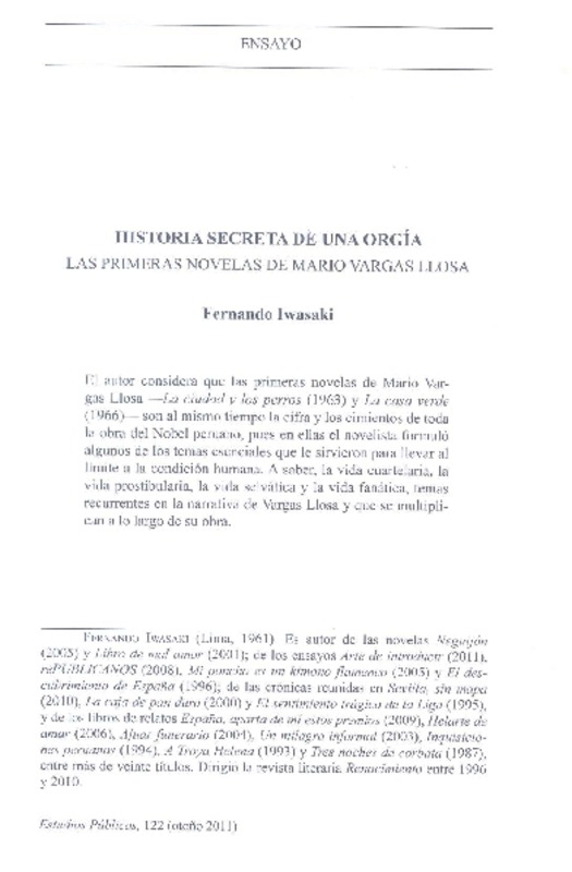 Vargas Llosa y los malentendidos [artículo] Arturo Navarro.
