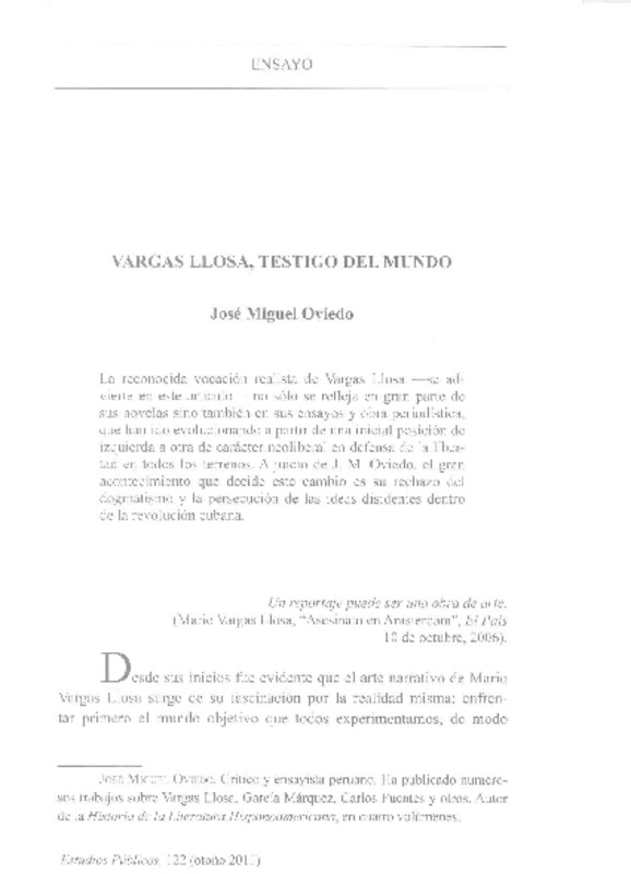 Vargas Llosa, testigo del mundo [artículo] José Miguel Oviedo.
