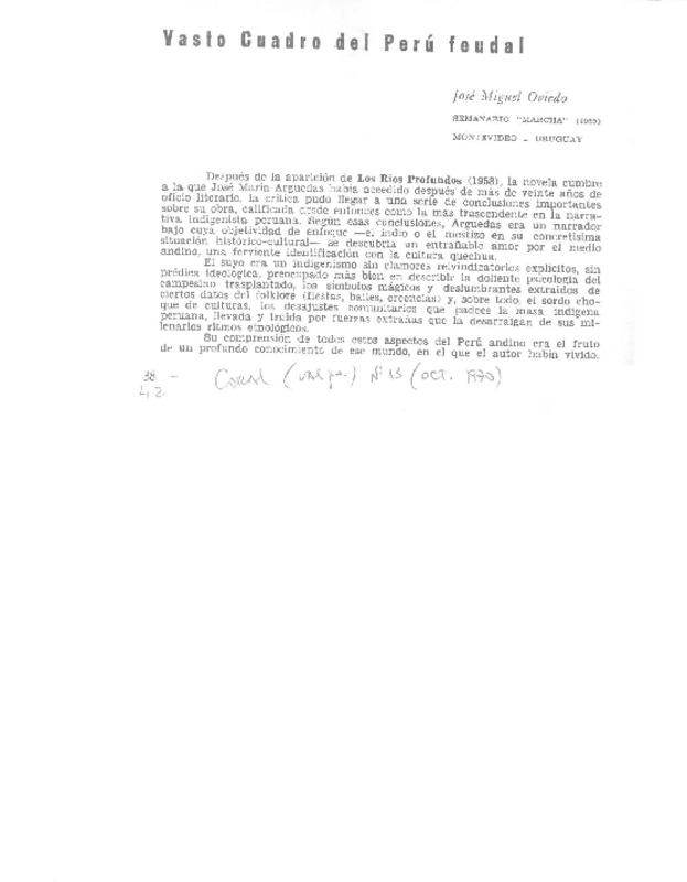 Vasto cuadro del Perú feudal [artículo] José Miguel Oviedo.
