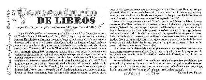 Autores peruanos - CALVO, LUCY - AGUR MAITIA