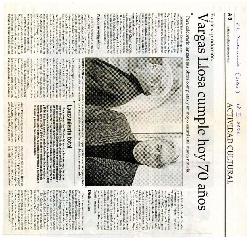Vargas Llosa: "es una obra que sigue vigente" [artículo]