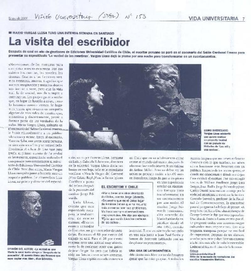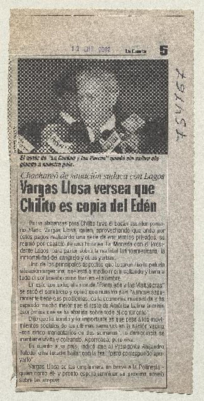 Vargas Llosa versea que Chilito es copia del Edén [artículo]