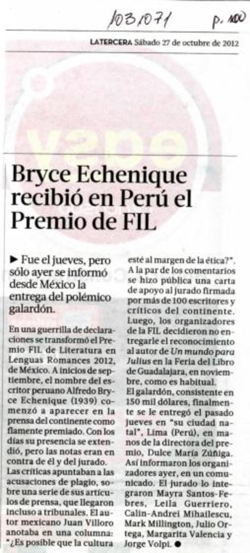 Alfredo Bryce Echenique ganó Premio Planeta. [artículo]
