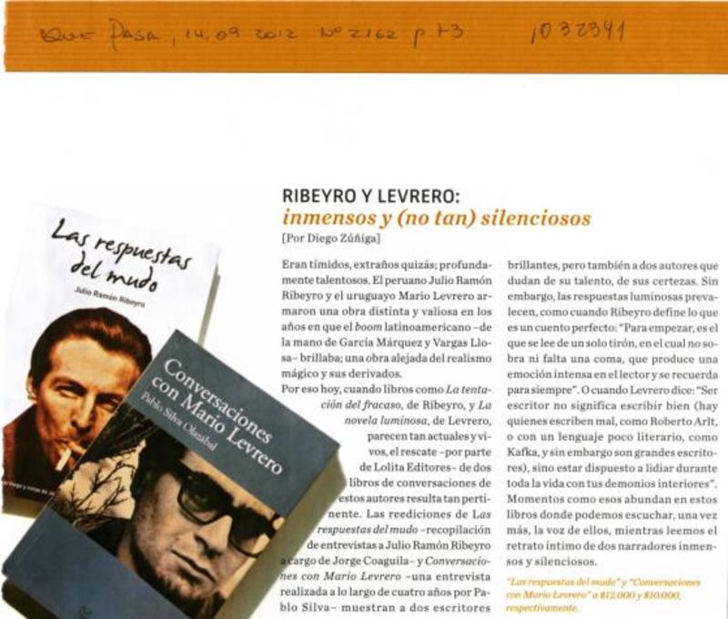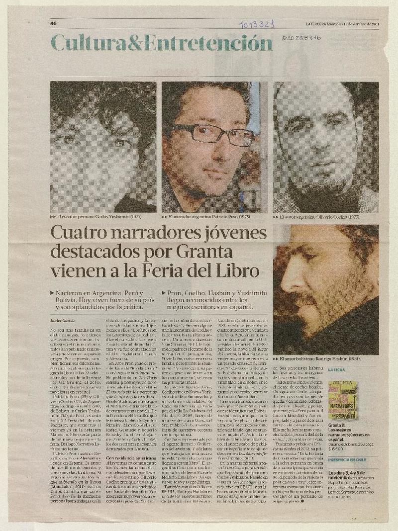 Autores chilenos - Cabrera Leyva, Alejandro - Roncagliolo, Santiago - Uribe, Armando - Bolaño, Roberto - Edwards, Jorge - Autores peruanos