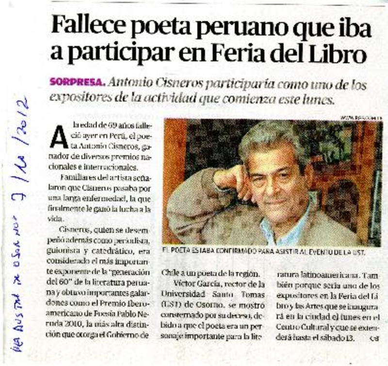 Autores peruanos - Bendezú, Francisco - Delgado, Washington - Carrillo, Francisco - Tamayo Vargas, Augusto - Belli, Carlos Germán - Corcuera Arturo