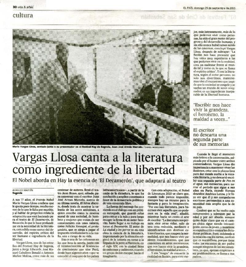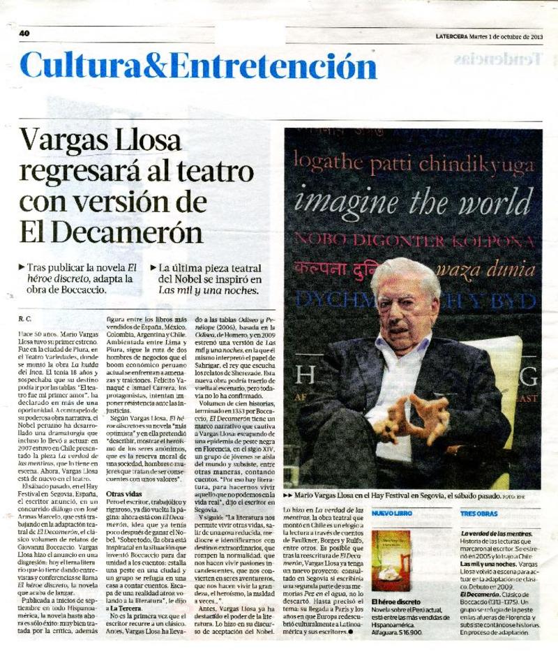 Vargas Llosa regresará al teatro con versión de El Decamerón [artículo] R.C.