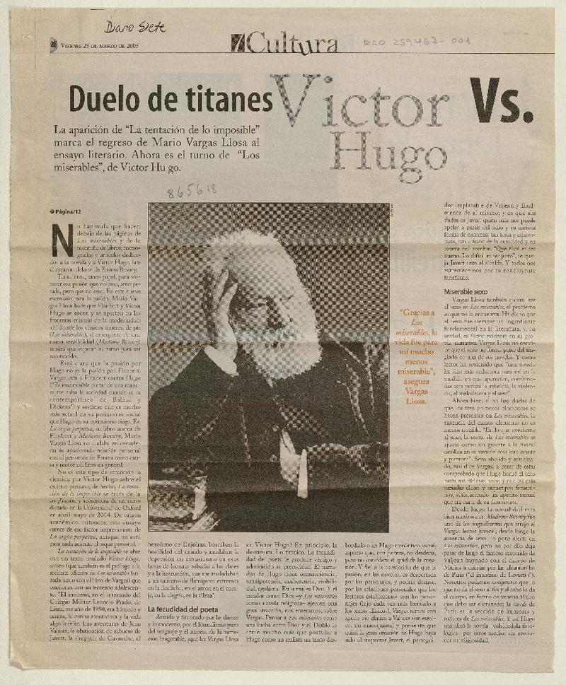 Vargas Llosa revisita Los Miserables [artículo] Pablo Marín
