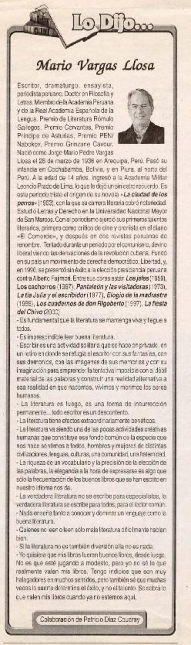Bayly, Jaime - Autores peruanos - Vargas Llosa, Mario